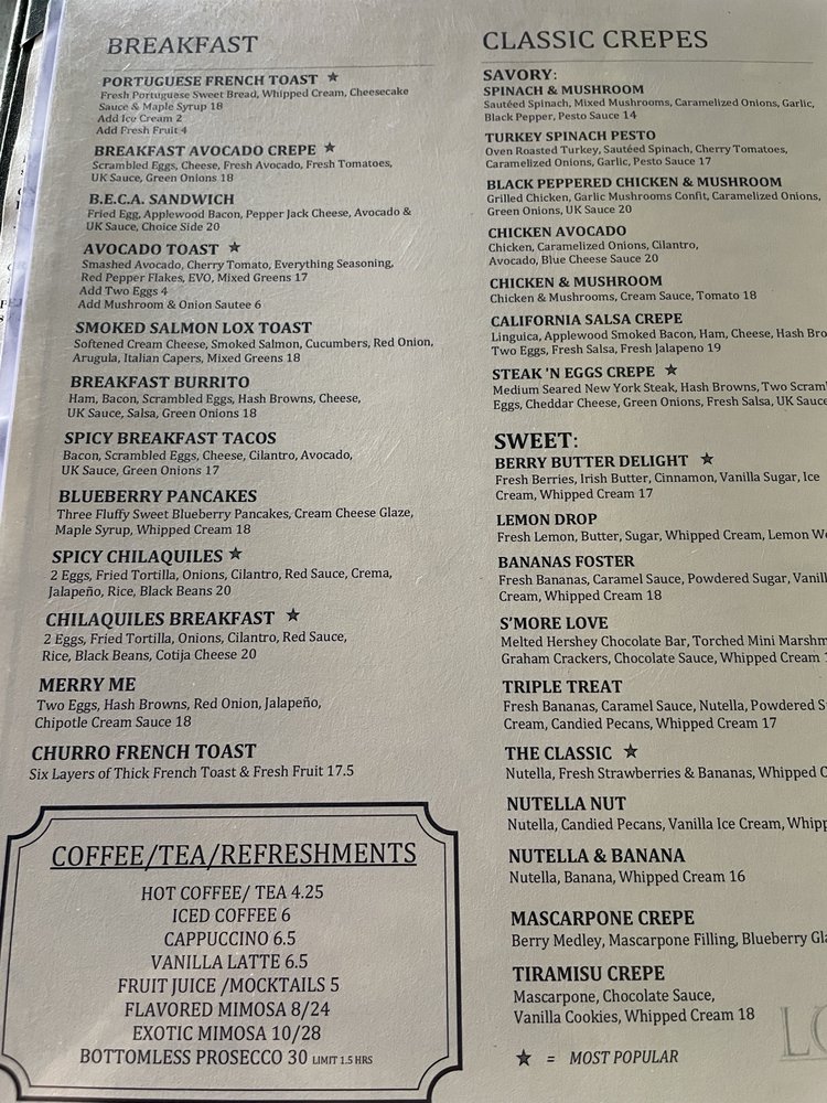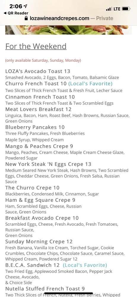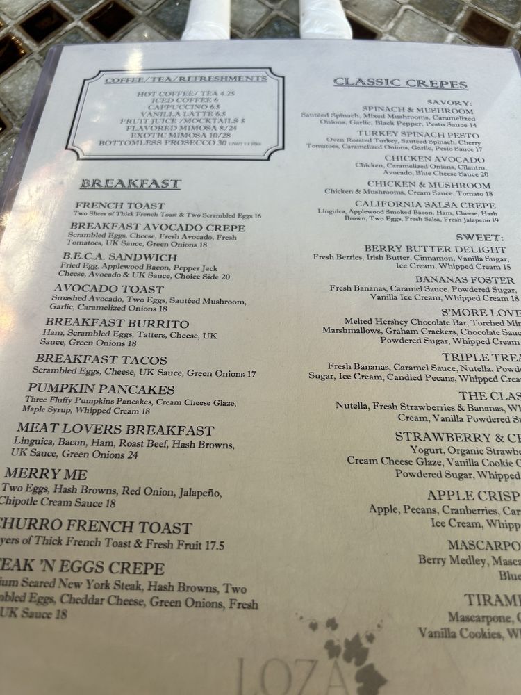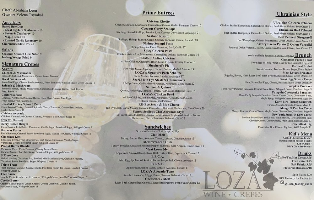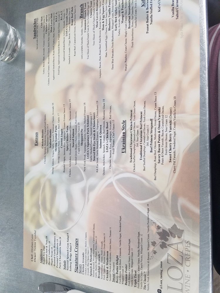 Loza Wine & Crepes is a charming establishment located at 601 E Main St Turlock, CA 95380, offering a delightful menu for breakfast, brunch, lunch, dinner, and dessert. The menu features a wide array of options, including Avocado Toast, Beca Sandwich, Blueberry Pancakes, and a variety of savory crepes such as Chicken and Mushroom, California Salsa, Chicken Avocado, and more. The cozy ambiance, attentive service, and creative decor make this a perfect spot for a date or gathering with friends. Customers have praised the delicious food, with highlights like the Churro French toast and mimosa sampler. Despite occasional service hiccups, the overall experience at Loza Wine & Crepes is enjoyable, offering a satisfying mix of flavors and a welcoming atmosphere.